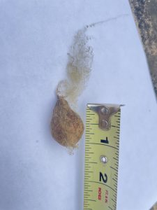 The Joro spider’s egg sac is NOT identical to that of a yellow garden spider. NOTE FROM KIM F.: :Joro eggs are in a whitish, webby-silky mass. The eggs themselves can have a pink hue.