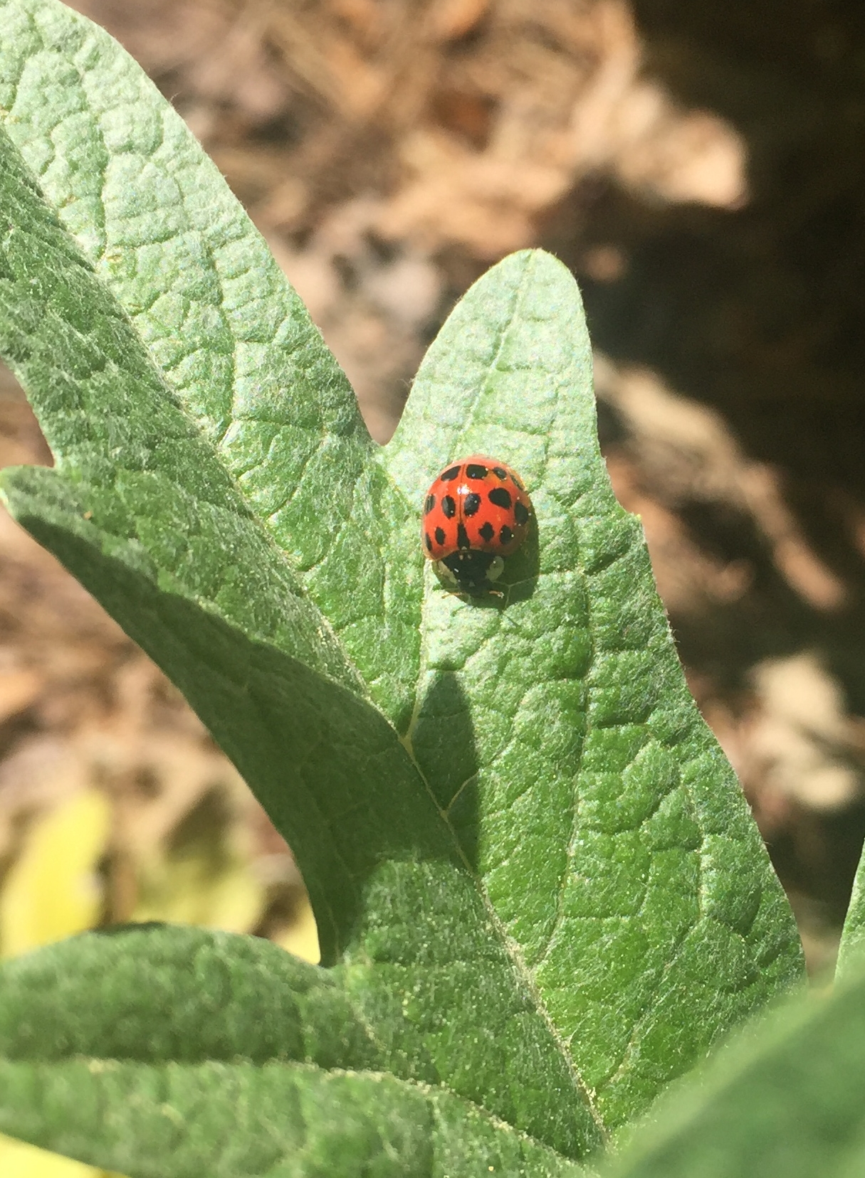 These are lady beetle larvae. I know they don’t look like an adult lady beetle but they are the intermediate step between lady beetle eggs and the finished beneficial insect.