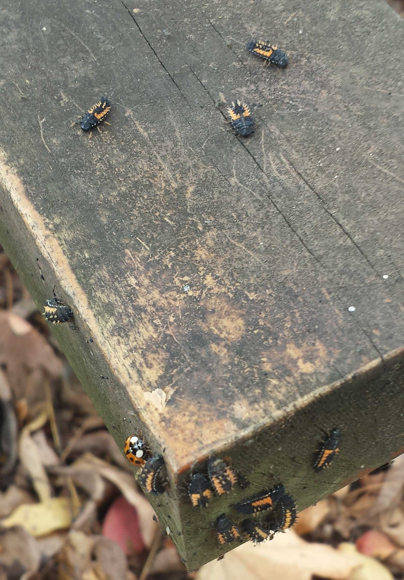 Q: Recently I attended a Christmas parade, after which I took a break on a nearby bench. It had all these weird bugs crawling on it.