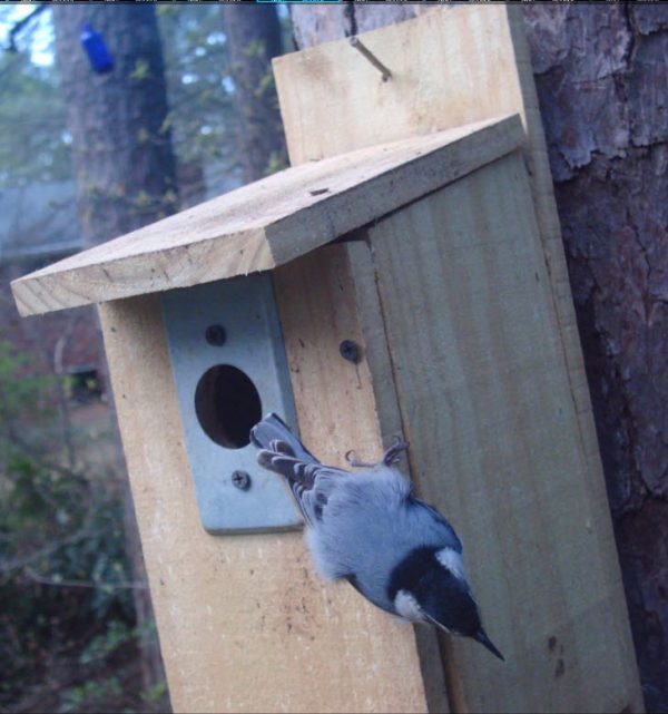 Q: We setup a bluebird house in our rain garden. White-breasted nuthatchs went in and out for a few days. Then the bluebirds showed up and took over. Today the nuthatch is going in and out. Did the bluebirds just give up? Is this scenario normal?