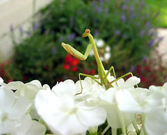 The insects will hatch in April. Keep your eyes peeled for them perched on the ends of twigs nearby, looking for a nice bug to eat.