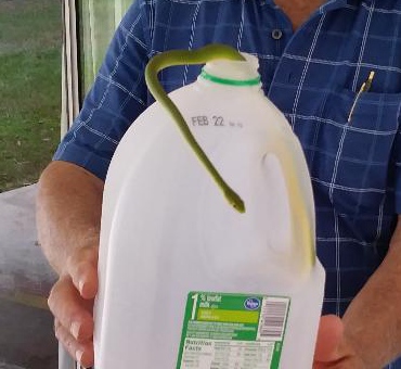 A: It’s a rough green snake. They are great climbers but completely harmless.