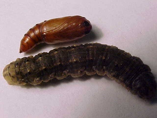 A: Your sod is infested with cutworms. I hate to say it but the sod probably had cutworm moth eggs on it when it was sold to your installer. They were not controlled properly at the sod farm. The installer would probably not have noticed the eggs. They hatched a couple of weeks ago, the caterpillars fed on your grass for several days and they then pupated.