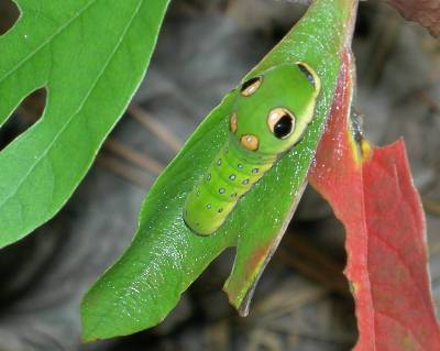Q: I was delighted to discover several volunteer sassafras seedlings coming up in my yard a couple of years ago. I checked on the largest one today and noticed it was being devoured by several bright green caterpillars munching on the leaves.