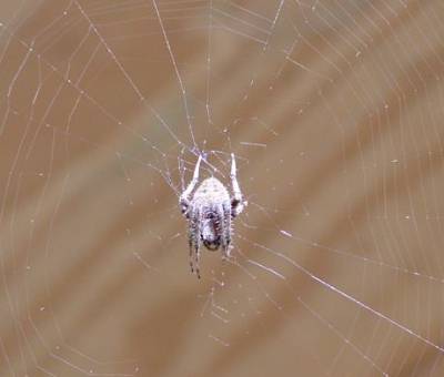 The usual name for Neoscona is “garden orb-weaving spider”….which seems pretty accurate!