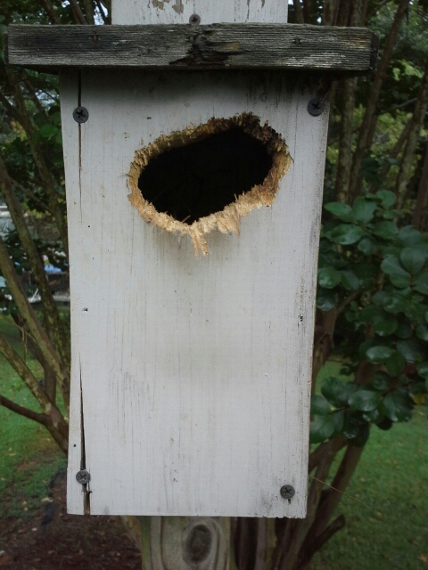 Q: What happened to my bluebird house? Was it squirrels or raccoons?