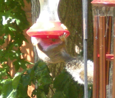 The other one, seems to be easier as they leave those flowers and drink. They can empty a feeder in less than a day. Is this normal or is this the beginning of the squirrels taking over the universe?