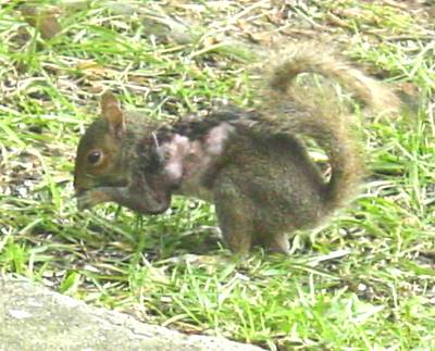 A: For some gardeners, a few less squirrels in the world would be a godsend. Others, though, enjoy watching the antics of these furry acrobats as they careen through the trees. Sometimes in the fall, squirrel watchers note that some of the animals have bare patches of skin. On closer examination, bloody ulcers and lumps can be seen there. Chipmunks may also exhibit these symptoms.