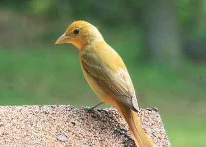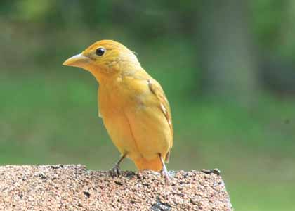 Q: Can you help me identify this bird? It’s seems too yellow for a gold finch. The photo was taken at my brother’s home in Newton county.