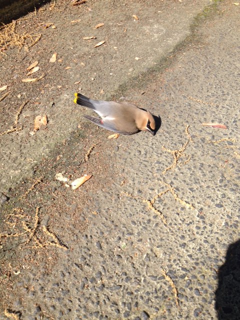 Q: I’ve seen several dead cedar waxwings at the entrance to my office. What do you think is killing them?