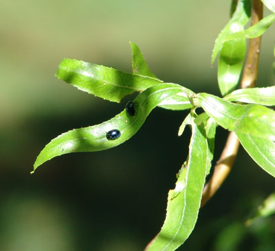 Spinosad (Captain Jack’s Dead Bug Brew, etc) or carbaryl (Sevin) are also registered for use on leaf beetles. Spinosad is less toxic; carbaryl is more likely to adversely affect populations of natural enemies or pollinators. Spray when the insects are first seen and repeat in mid-July.
