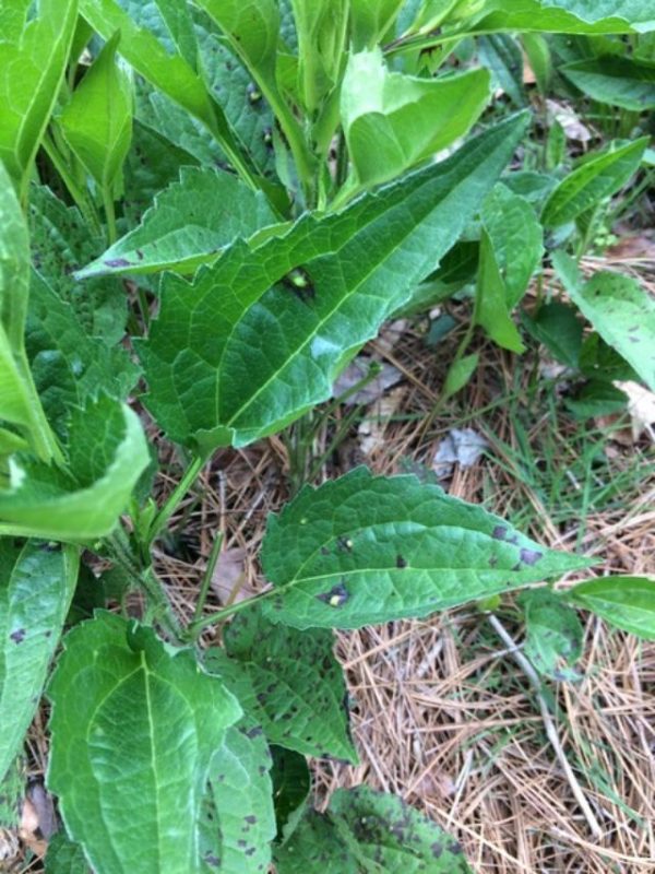 Q: These little light green bumps surrounded by a black spot showed up on my black eyed Susan‘s almost overnight. They are throughout the patch on many different leaves. Is this a bug or is this a fungus?
