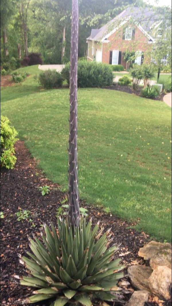 Q: My sister brought this cactus-looking plant from Columbia SC three years ago. It sprouted something in the middle last week. It gets bigger daily. It’s about 15 feet high now. What is it?