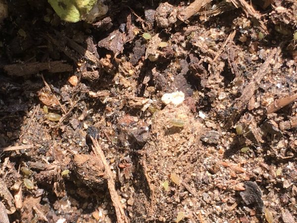 Q: Do you know what these small, clear, yellow insects are called? They are in planters we have outside.