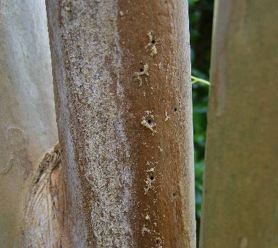 Q: I have toothpicks of sawdust coming out of the trunk of one of my crapemyrtles. The other one looks OK but this one can’t put out much new growth.
