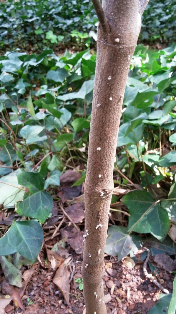 Q: I purchased a young dogwood from “big box” store and planted it a few weeks ago. A couple days ago I noticed small white cylindrical sticks on the bark. They’re powdery and brushed off easily but reappeared the next day. Can you tell me what this is, and is it harmful to the tree?