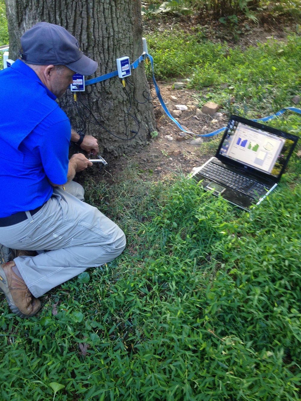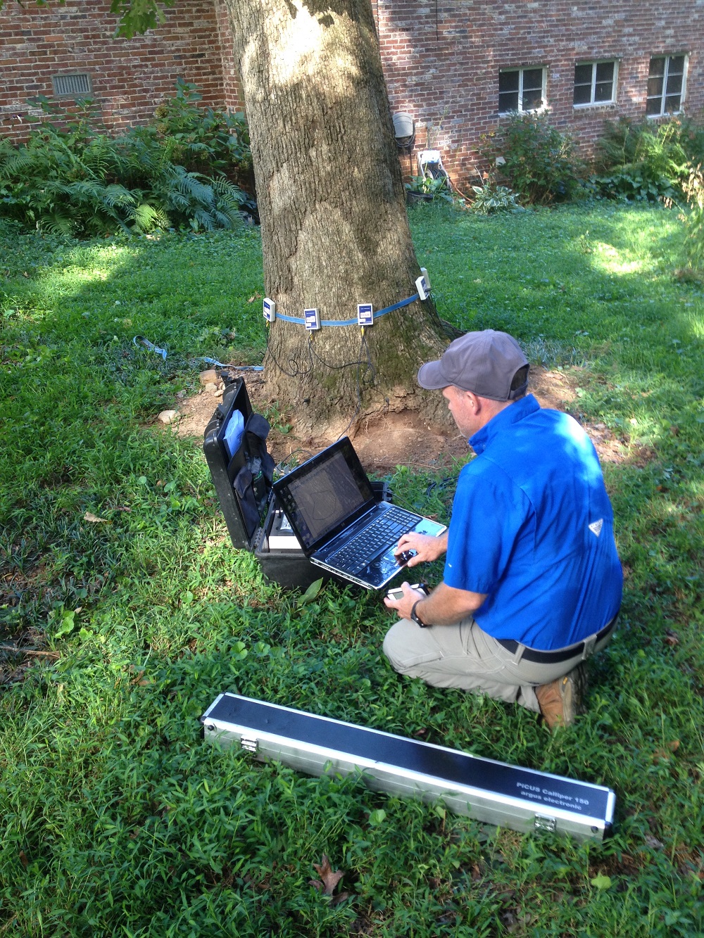 Chris has an amazing computer-driven system that allows him to “see” inside a tree trunk to determine if it is hollow.