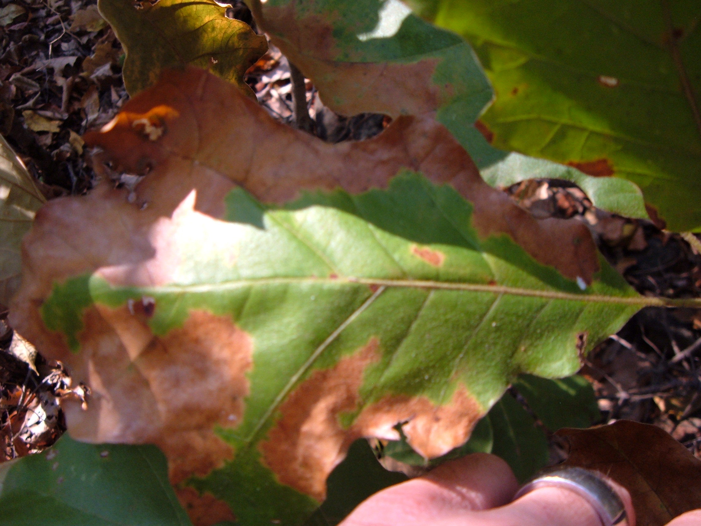 Q: My oak is turning brown and dropping leaves earlier than normal (late September). What could cause this beside drought?