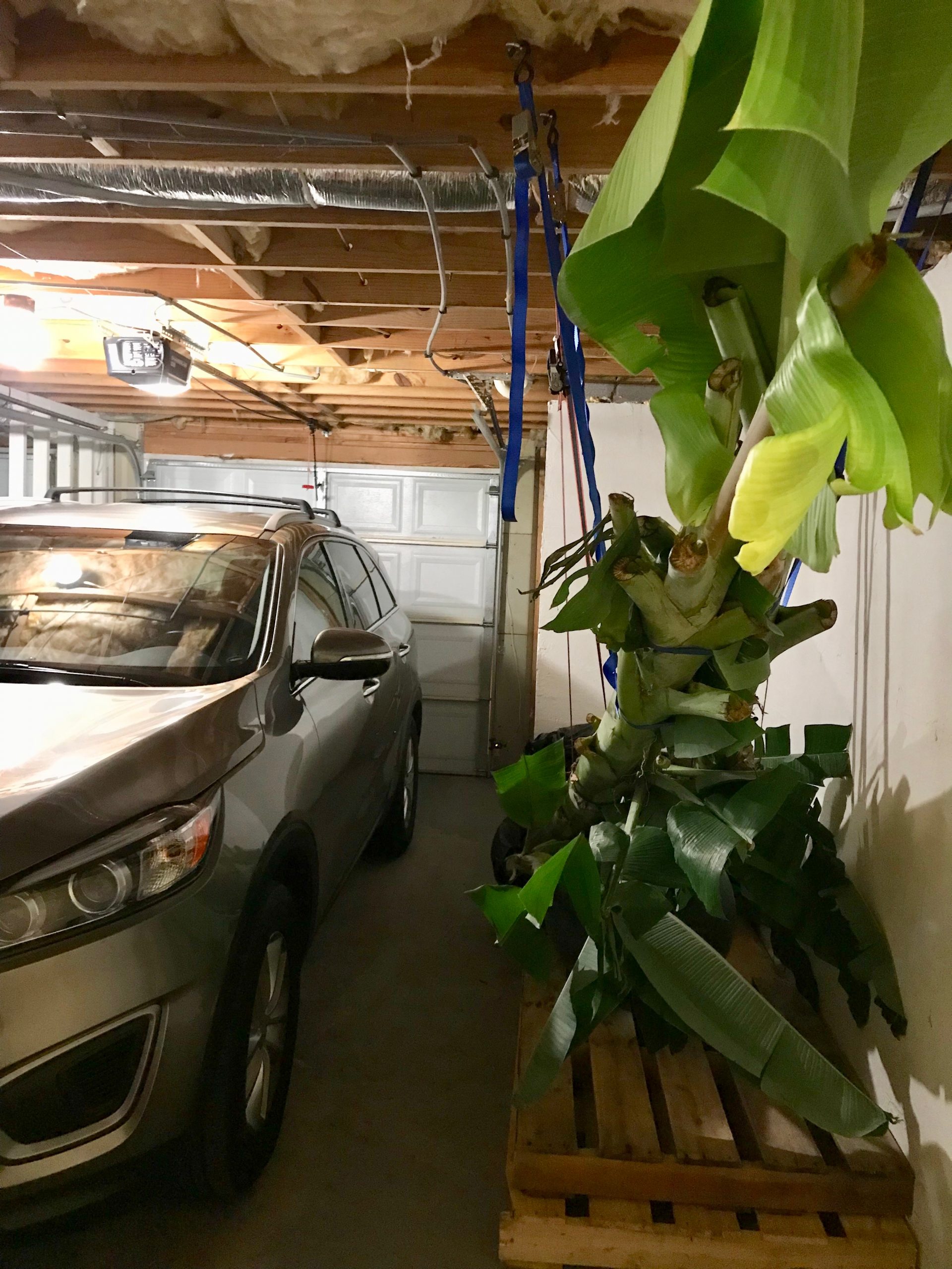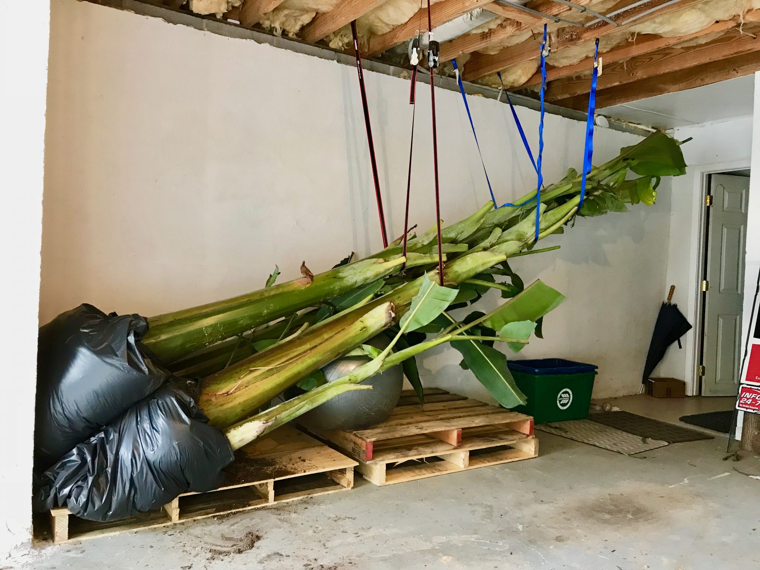 Regarding the tall banana cultivars in my basement/garage dry-storage: some of the pseudostems are over 30 inches around and can weigh anywhere from 100-500 LBS!