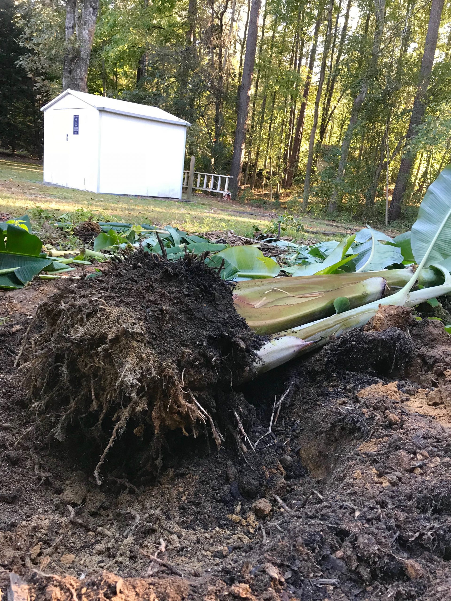 I have pictures of a little bit of what I had going on this year and the pictures don’t do them justice. The picture of one of my banana patches under the blue sky was toward the end of August right before hurricane Irma hit us. I attached a pic of the Irma aftermath too. They are all so much taller and more robust now but Irma shredded a lot of leaves and they don’t look as majestic as they did before Irma. They bounce back real quick though! They look so small in the pics but I can promise they’re giant! I attached a pic of a Folgers coffee container (the big kind) next to one of the pseudostem bases for scale of the larger cultivars I grow.