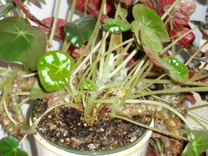 A: I first saw this begonia in the home of my childhood neighbor, Mrs. Mary Harp. She called it “Ox Heart Begonia” but its common name is “Beefsteak Begonia”. The scientific name is Begonia x erythrophylla. The last part of its scientific name is interesting. “Erythro” means red and “phylla” means leaf, perfectly describing the backside of your begonia’s foliage.