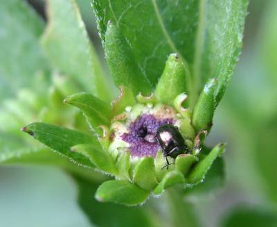 Q: My black-eyed Susans were beautiful last year, but this year the growth is stunted by a very small black beetle. It eats the upper bud and leaves. What organic insecticide can I use to eliminate this pest?