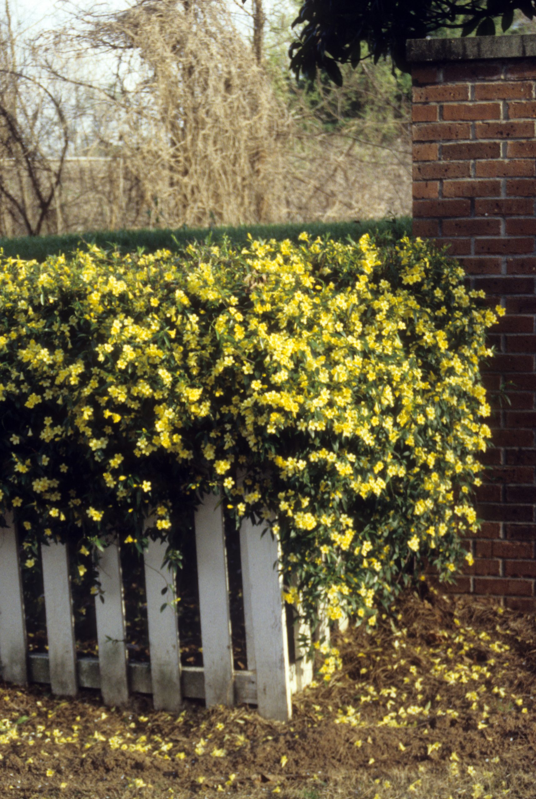 It’s a terrific spring-flowering vine often seen on Southern arbors. It’s also spotted along highways, where its habit makes drivers think they’re seeing a yellow-flowering tree.