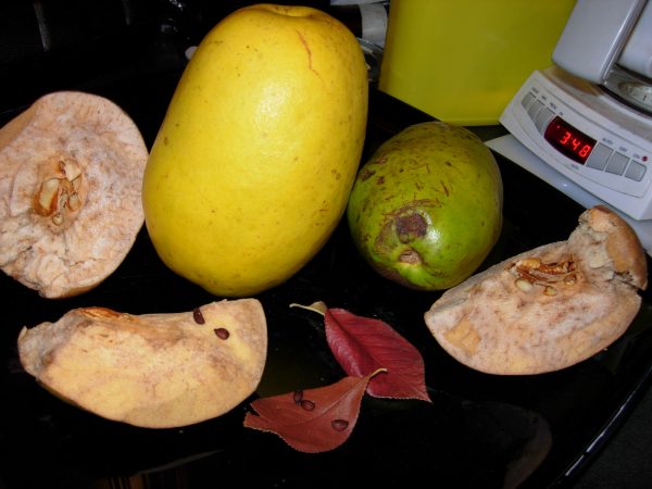 Fruits of the Chinese quince are larger than other quince; they are round or pear-shaped and weigh up to 1 pound. They are very hard and are only edible when cooked.