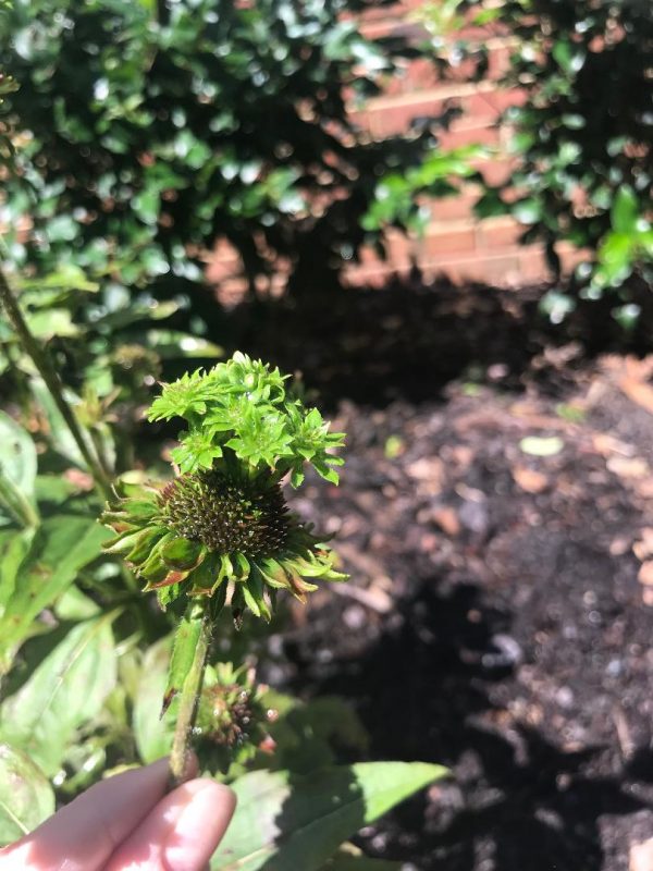 Q: I discovered deformed blooms on my coneflower, which I suspect to be caused by aster yellows. I immediately dug up the plant and threw it out. After more research I discovered coneflower rosette mites cause similar damage. Can you tell from this picture if my coneflower had aster yellows or did it have mites?