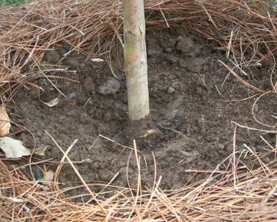 Be sure to excavate around the base of the new tree to make sure all of the roots are headed in the right direction.