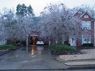 They are adjacent to my driveway and when in bloom or when carrying ice were severely encroaching on my driveway. In addition they were above the roof line and close enough to the house that they were making deposits to my gutter system.