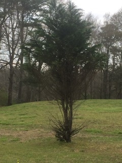 Q: I have 3 Leyland cypress that the deer have chewed. They are continuing to grow tall but after a couple of years they still don’t seem to be filling in on the bottom. The guy who planted them said they would fill in and to leave them alone. I am beginning to disagree with him.