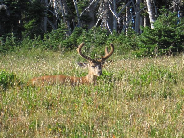 A: Deer have incisor teeth in their lower jaw but not in the upper jaw. So when they nibble on a bush, they have to jerk upward once or twice to clip the limb. This usually leaves a ragged end. Your best option is to use hand clippers to make clean cuts on the tips of as many branches as you have the time to care for. This will help prevent stem diseases from invading. Deer control can be an exercise in frustration. Repellents work sometimes. But nothing is 100% effective for deer control except a fence.