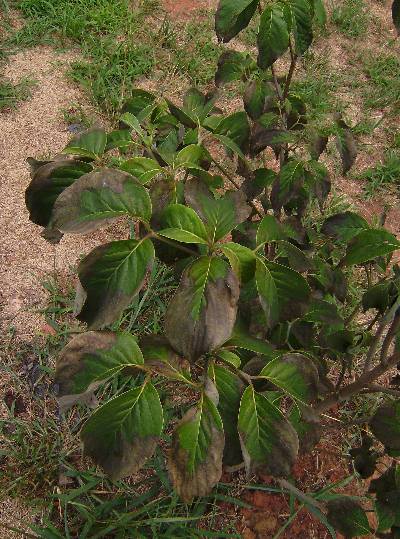The damage I see to the dogwood leaves is called “marginal necrosis”. That’s a fancy way of saying that the edges are dry and scorched. This happened because the tree roots haven’t been able to absorb enough moisture. Either the soil got too dry or the roots haven’t developed enough to grab the water they need.