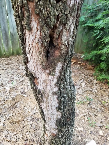 Q: My 23-year-old Dogwood tree is having an issue on the trunk. Other than this, it looks fine. I saw some ants going in a hole on the trunk.
