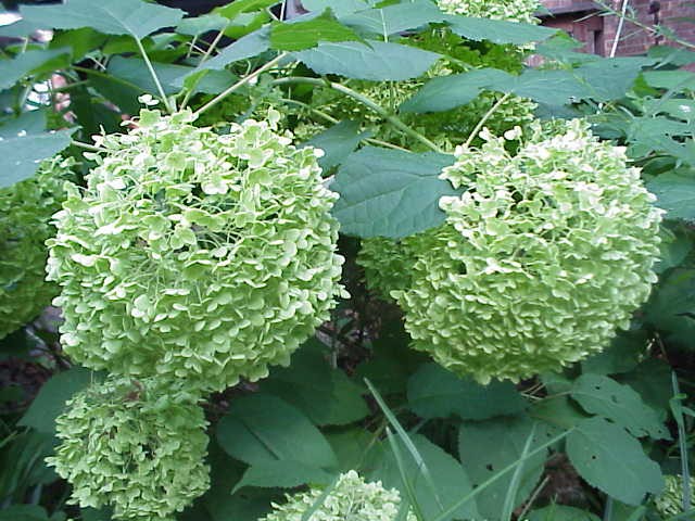 Now an ‘Annabelle’ hydrangea prospers there, covered in white blooms slowly turning green. While the French hydrangeas out back are pitifully wilted and droopy, the ‘Annabelle’ has been watered only by the rain since April.