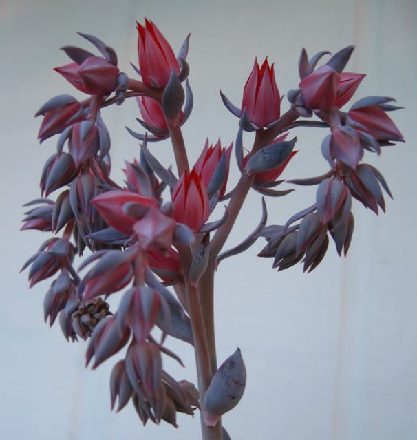 A: Tropical plant expert Winston Eason says it initially looked like Aeonium ‘Garnet’. However, on further reflection we now think it is Echeveria ‘Duchess of Nurnberg’