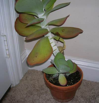 Thank goodness someone named it with something we can pronounce! The common name is flapjack plant, due to the big floppy leaves.