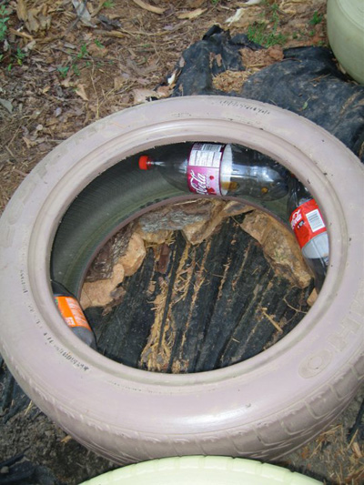– If you fill up the tube area of the tires with bottles you reduce the amount of soil needed.