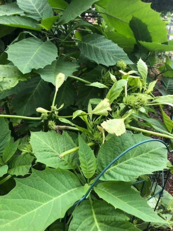 When John S. asked about the tiny leaves on his angel trumpet, I told him it sure looked like the damage that glyphosate causes on azalea, rose and crapemyrtle.