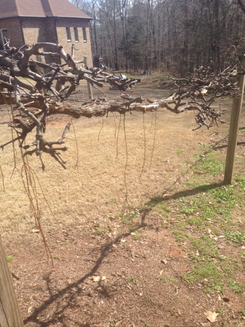 A: They are called aerial roots. I’ve noticed them many times on the muscadine vines at Callaway Gardens. They seem to be initiated by some sort of wound, most likely cold damage on the woody arm of the vine. I have never noticed them doing harm to the plant.