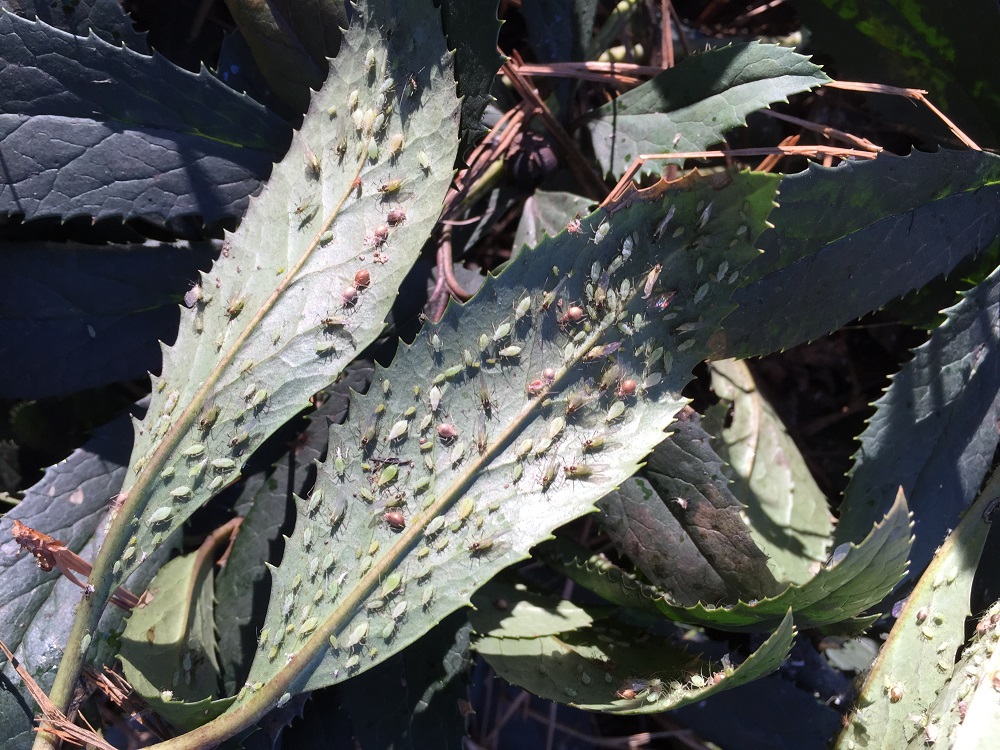 Most garden insecticides (click for sources) kill aphids but you have to be precise about getting the product under the leaves, since that’s where they live.