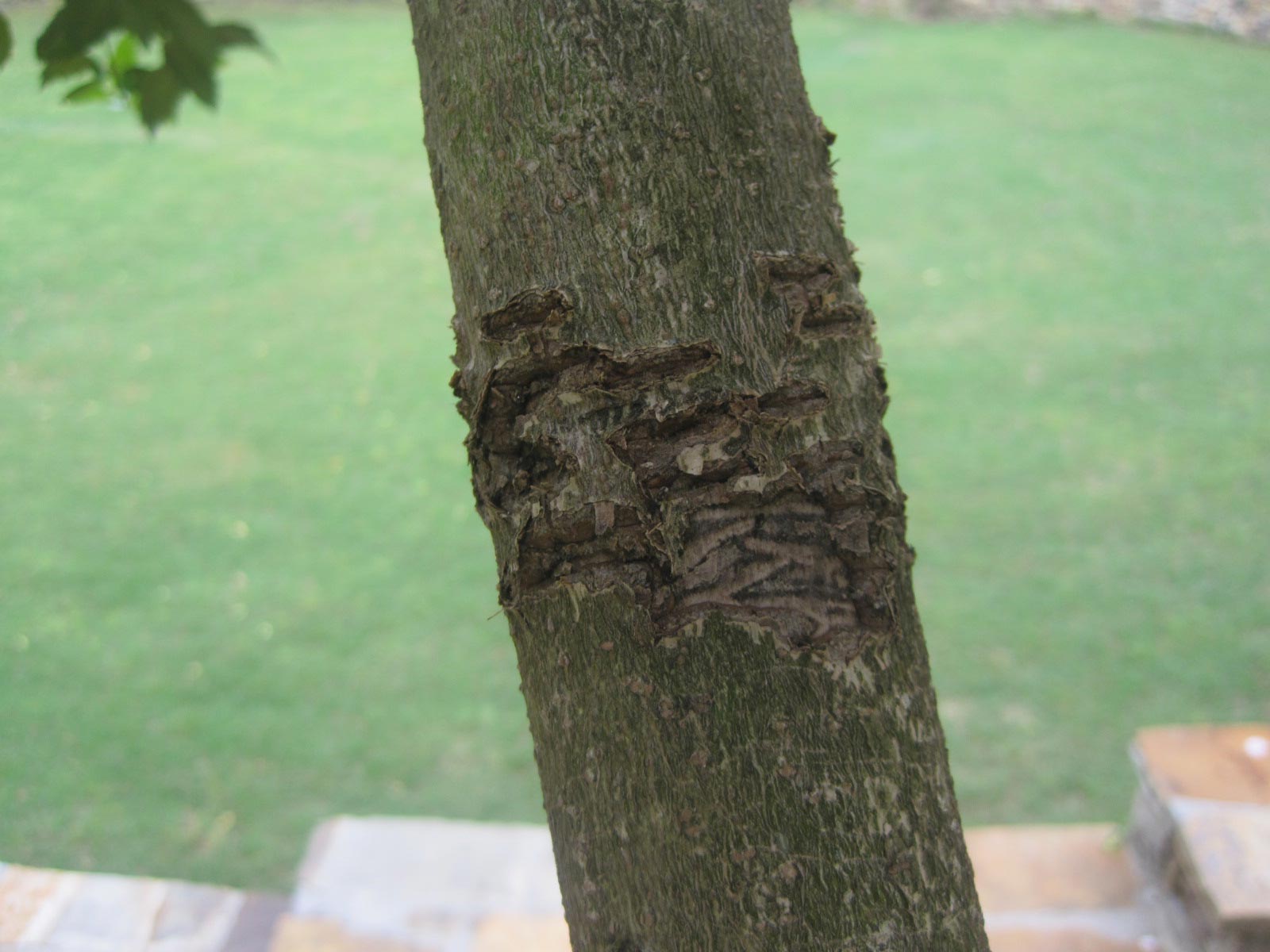 Q: I have been searching the Web for photos or advice from many people and nobody knows for sure what my problem is. I have 8 hollies that line my yard. On the lower trunks there is bark damage. It then appears on the other branch at the exact same level on another tree. All of the trees show some damage and it is only in the exposed part of the tree and not where the branches are thick. Then I have one tree that is completely different and appears as a different problem altogether.