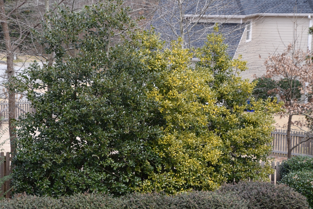 Q: My hollies have been in the same spot of twenty years and all of a sudden two of them are turning yellow. What should I look for?