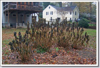 Q: What do I do now that freezing weather has taken its toll? These were hydrangeas but they look pretty pitiful now.