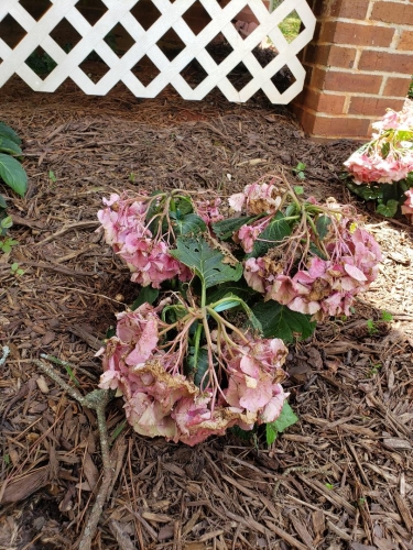 Q: I planted hydrangeas to spruce up my yard before putting my house on the market. They were getting along just fine for over a month and then they began to fade and wilt.