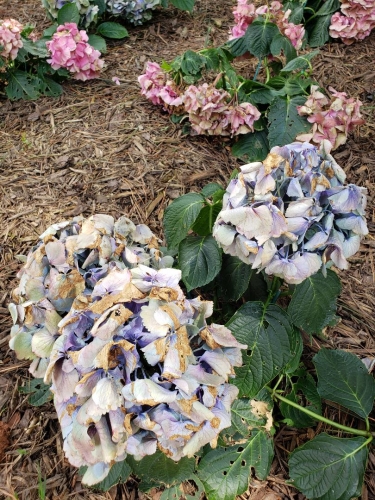A: The wilted flowers on your plants tell me that the root ball dried out once or twice after planting. I’m confident the hydrangeas will survive if you clip off the flowers and soak the roots with water.