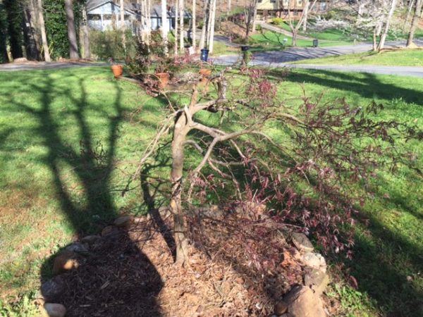 Q: My Japanese maple needs help. A tree service miscalculated when dropping a pine tree in my front yard. They dropped the tree correctly into an open area, but when it hit the earth it bounced. And unfortunately it bounced up and into my little tree, taking out all the branches on the back side. What should I do?