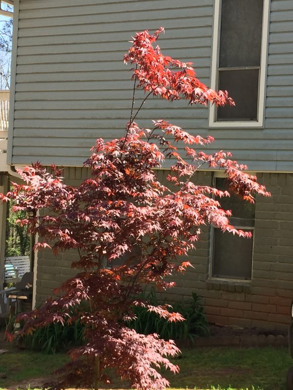 Q: My four-year-old red Japanese maple is very top heavy, with two feet distance from the top to the next row of branches. Is this normal? Should we prune that top?