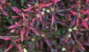 A: Your plant is Joseph’s Coat, Alternanthera ficoidea. Sadly, it definitely will not overwinter outdoors. You can try rooting 4 inch cuttings. Place a couple of them in a glass of water in a sunny window. Or you can build my propagation warmer
